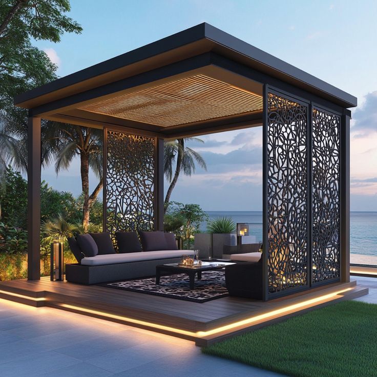- Лазерная резка. Позволяет создавать любые рисунки и элементы на металлической платине. Используется для создания оформления на воротах, калитках, мангалах, для перегородок внутри помещений или снаружи, для дровниц и других элементов, которые обладают не только привлекательностью, но и функциональностью.